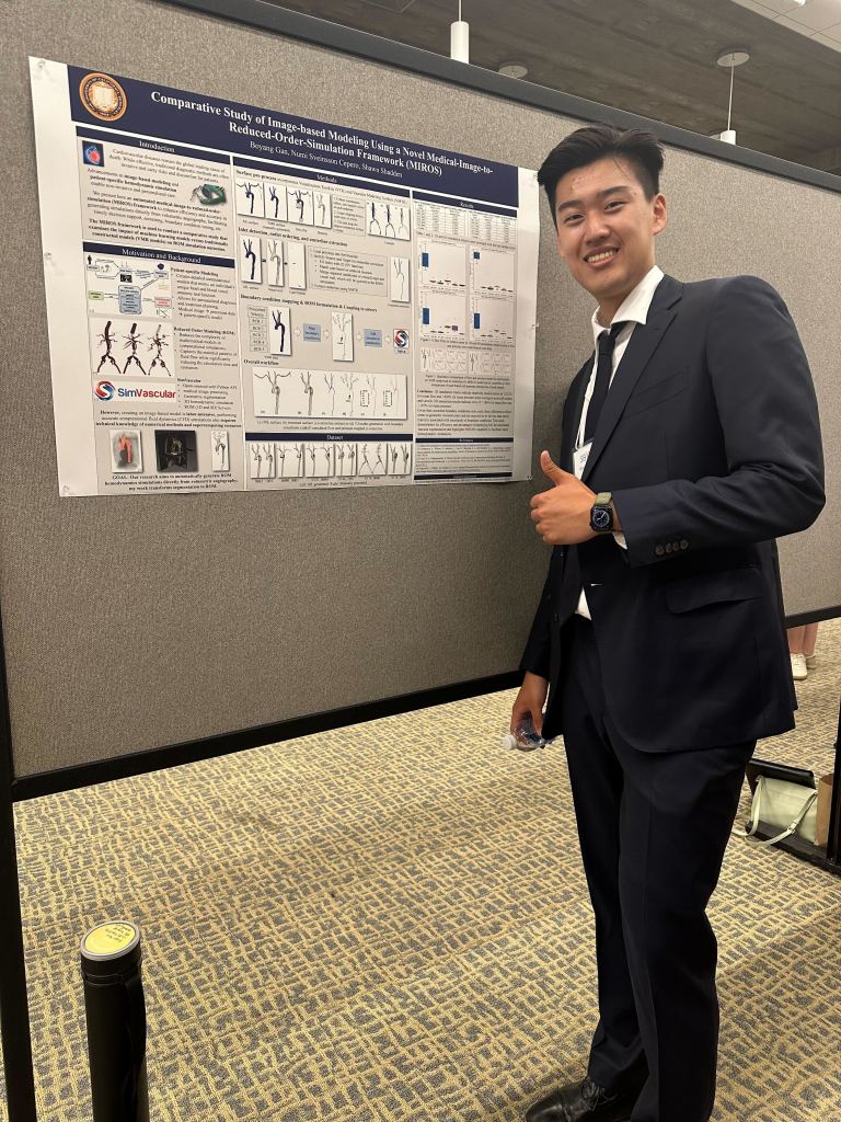 Congratulations to Hannah Zhai and Yurui Chen for giving excellent poster presentations on multiscale modeling of blood flow and fluid-structure interaction in the aorta. Congratulations Lei Shi, for two great talks on creating personalized computational models of the left atrium and the stomach. Congratulations, Aaron Brown, for an outstanding talk on personalized biventricular mechanics. We are super excited that our new graduate student, Bryan Gan, won 2nd place in the undergraduate poster competition.